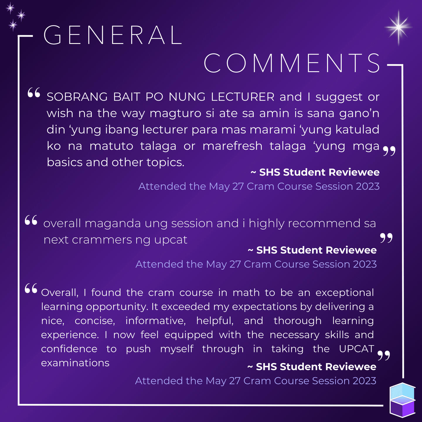 Regular Sessions are all completed since UPCAT 2024 is done. Please email to request a custom schedule. Rest assured that no additional payment would be required for a custom schedule.Email: [email protected]